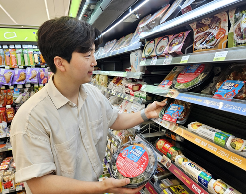 CU와 농심이 컬래버해서 만든 배홍동 간편식을 살펴보는 소비자. [BGF리테일] 편의점 업계 1위 CU와 국내 식품 대표 기업 농심이 협업 폭을 넓힌다.