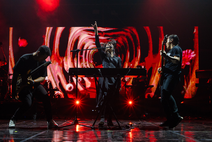 지난 22일 인천 영종도 파라다이스시티에서 열린 아시안팝페스티벌 2024에서 노래하는 인도네시아 가수 이시야나 사라스바티와 밴드. 사진제공=파라다이스문화재단