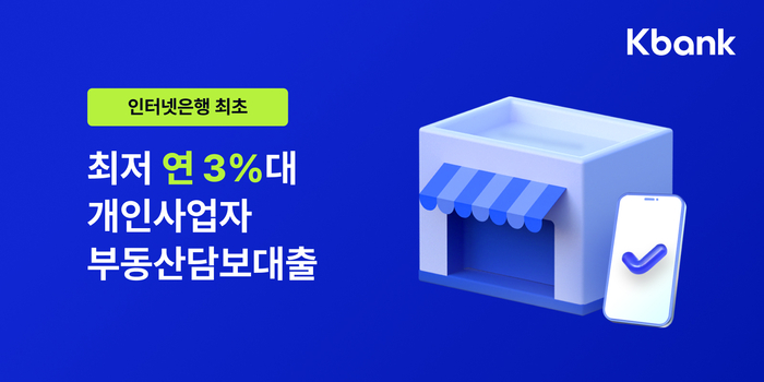 케이뱅크,인터넷은행 최초로 최저 연 3%대 개인사업자 부동산담보대출 출시. [사진 출처 = 케이뱅크] 사장님들의 눈길을 사로잡은 대목은 단연 ‘금리’다.