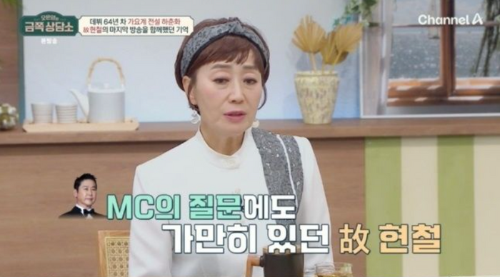 하춘화는 “현철의 마지막 무대를 함께 했다”며 “옆에서 이상했다,MC 질문에도 가만히 있다가 ‘여기가 어디냐’라고 했다”며 녹화 중 소통조차 어려웠다고 전했다.