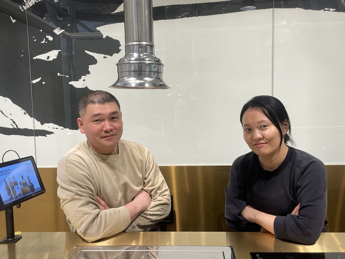 서울 강서구 마곡동에서 머슬장어를 운영하는 서승민·김미화씨 부부. <부자비즈> 머슬장어에 들어서면 와인바처럼 멋들어진 인테리어 외관이 눈길을 사로 잡는다. 김씨는 무엇보다 주방 시스템에 과감하게 투자했다. 야채 생강 마늘 써는 기계부터 식기세척기,불판세척기,초음파세척기 등을 설치해 주방자동화를 단행했다. 홀 테이블마다 인덕션도 설치했다