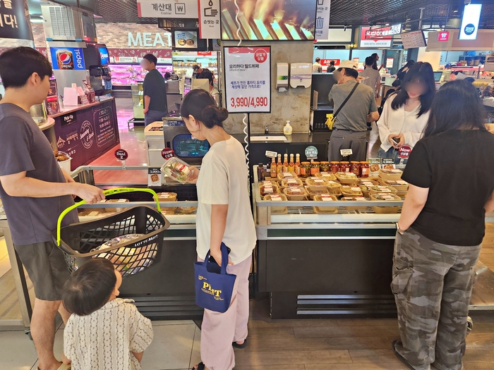 지난 14일 롯데마트 월드타워점에서 ‘요리하다 월드뷔페’ 상품을 구매하는 고객들의 모습. [사진 출처 = 롯데마트]