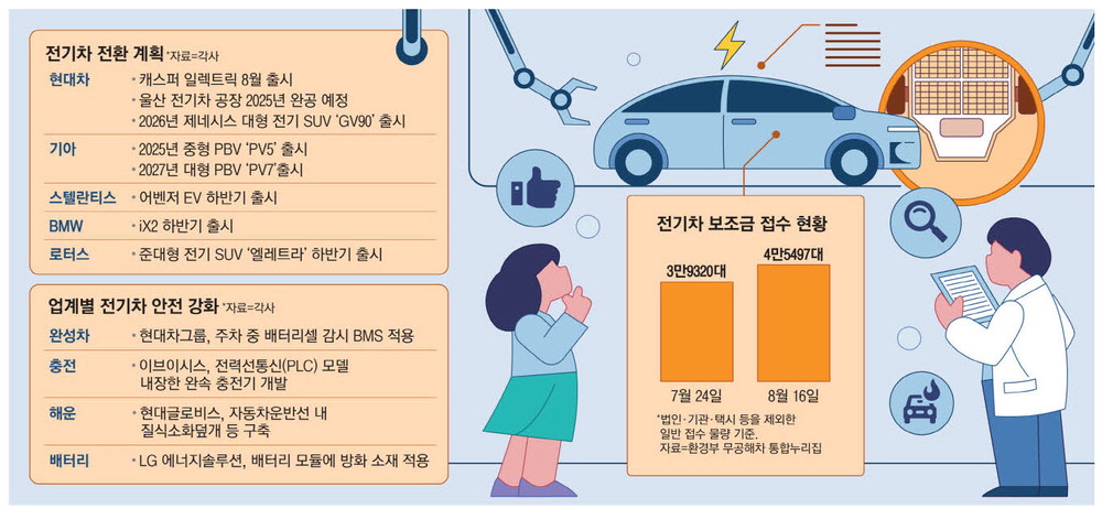 19일 업계에 따르면 인천 화재 후폭풍 속에서도 현대자동차·기아 등 국내에서 차량을 판매하는 완성차 업체·수입차 업체 중 예정됐던 전기차 신차 출시 일정을 미룬 곳은 한 곳도 없는 것으로 파악됐다. 전기차 캐즘(성장 정체)에 화재가 겹쳤지만,장기적인 방향에서의 전동화 전환에 대한 변동은 없다는 입장이다.