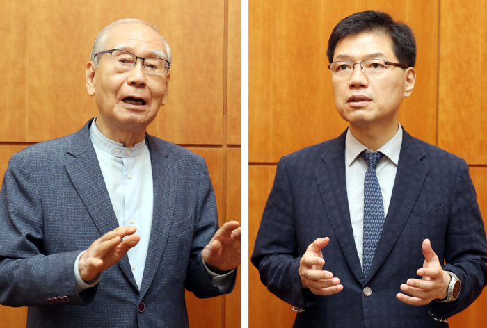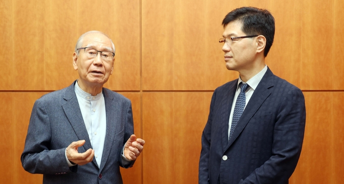 김진현 세계평화포럼 이사장(왼쪽)과 김명섭 연세대 정치외교학과 교수가 서울 중구 매경미디어센터에서 만나 대한민국의 현주소와 앞으로 나아가야 할 길에 대해 논의하고 있다. 김호영 기자