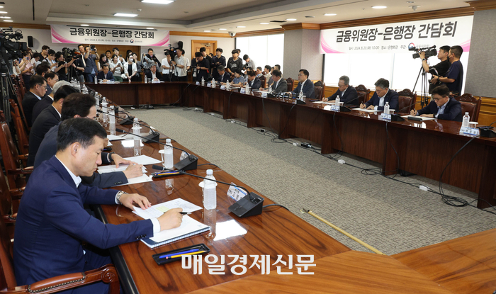 20일 오전 서울 중구 은행연합회에서 김병환 금융위원장과 각 시중은행장들이 참석한 가운데 금융위원회-은행권 간담회‘가 열리고 있다. 2024.8.20[이충우기자]