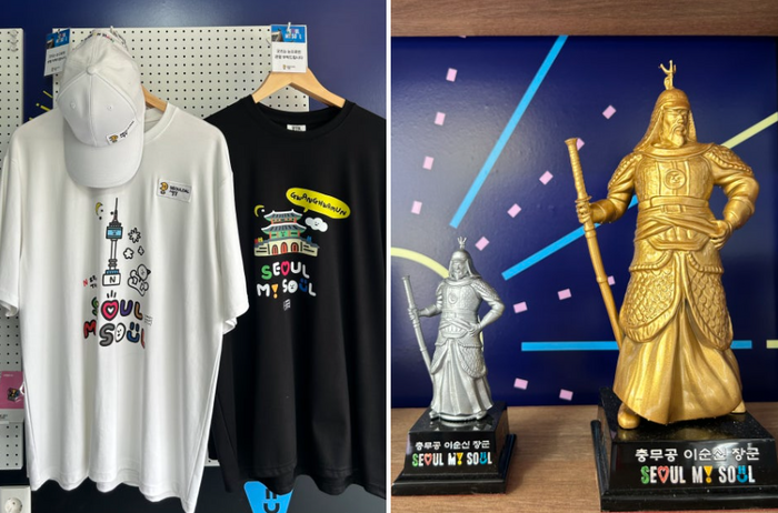 대기실 내부 키오스크 / 사진= 박한나 여행+ 기자 대기실 이곳저곳을 둘러봤다. 입구를 기준으로 뒤편에는 ‘서울’을 주제로 한 다양한 기념품을 전시 중이다. 남산타워가 그려진 티셔츠,충무공 이순신 동상,세종대왕 그릇 등 기발한 아이디어가 넘치는 다양한 굿즈를 구경해볼 수 있다.