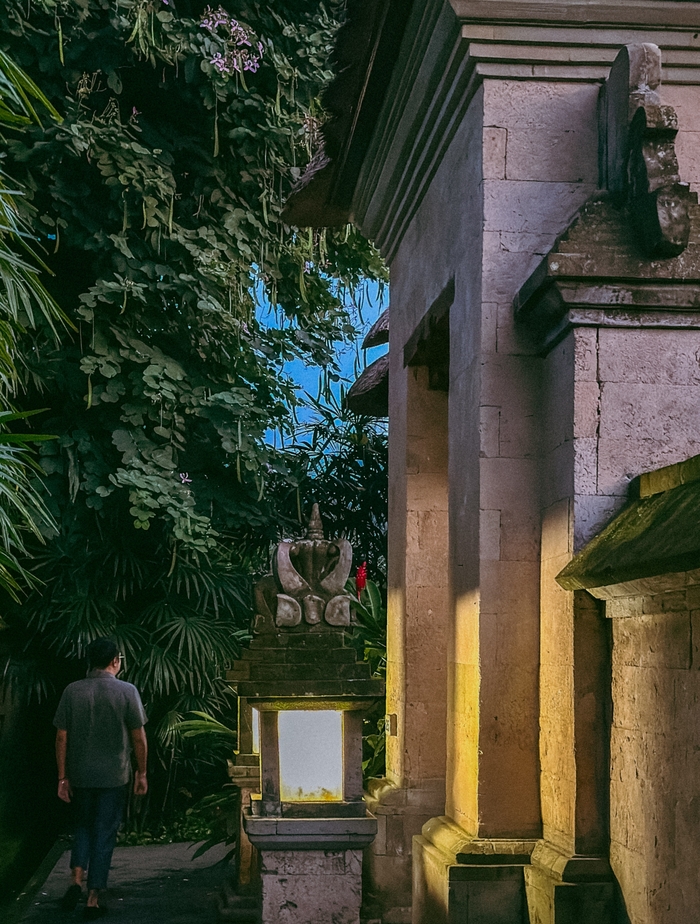 호텔 곳곳에 자리한 작은 사원 / 사진=권효정 기자 매일 저녁,인피니티 풀 옆 파빌리온에서는 현지 음악가들의 공연이 펼쳐진다. 전통 악기 선율이 열대 밤의 매력을 한층 더하면,투숙객들은 진정한 발리를 경험하게 된다. 호텔 곳곳에 자리한 작은 사원은 장식이 아니다. 직원과 지역 주민의 실제 신앙 생활 공간이다.인도네시아 종교 지형도에서 발리는 독특한 위치를 차지한다. 대부분 인도네시아가 이슬람권인 반면,발리는 주민 10명 중 9명이 힌두교를 믿는다. 발리인들 일상은 새벽부터 밤까지 기도와 제물 봉헌으로 채워진다. 종교 의식이 일상에 깊이 스며든 발리의 모습은 깊은 인상을 남긴다.