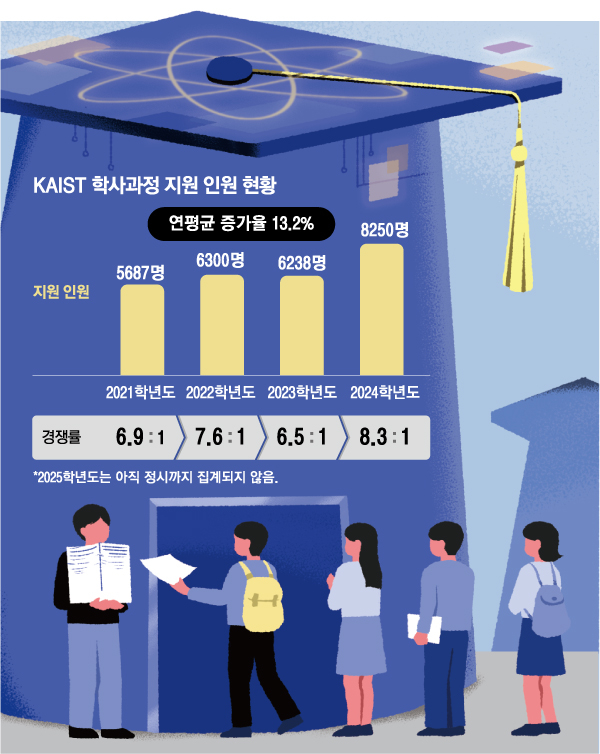 김용현 KAIST 입학처장은 “학생의 진로 선택의 자율성을 극대화하는 무학과제도를 비롯해 도전을 장려하는 성적표기 방식 등 독창적이고 도전적인 인재를 기르기 위한 다양한 제도 덕분에 지원자가 늘어난 것”이라고 분석했다.