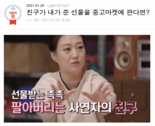반면,다른 쪽에서는 “본인이 준 선물이 중고거래 플랫폼에 올라오는 걸 본다면 마음이 상할 것 같다” “굳이 선물까지 팔아서 돈을 벌어야 하느냐”는 비판도 제기된다.