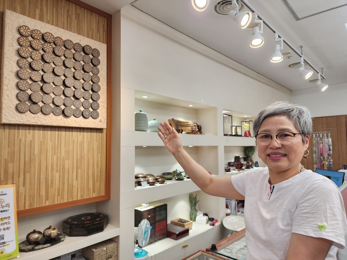 심명숙 쎄쎄쎄마켓 대표. <부자비즈> 올해 초에는 인천지하철 1호선 예술회관역에 쎄쎄쎄마켓이라는 공방 매장도 문을 열었다. 쎄쎄쎄마켓은 지역 주민들의 호응이 높다. 지하철역 안에 있어 지역 주민들이 편리하게 방문해서 매장에 전시된 다양한 공예품을 즐기고 구매도 할 수도 있지만 최근에 미래형 공방으로서의 모습을 갖췄기 때문이다.