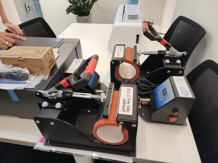 쎄쎄쎄마켓 스마트가마. <부자비즈> 스마트 가마는 매장에서 교육과 체험 프로그램을 할 때 고객들이 자신이 만든 제품에 문구나 디자인을 넣을 수 있도록 하고 있다. 쎄쎄쎄마켓에 전시되는 제품은 1만~2만원대부터 100만원이 넘는 작품까지 다양하다. 고객들이 전시되는 제품을 구매할 때도 스마트 가마를 활용할 수 있다. 텀블러나 그릇 등 구매 제품에 원하는 문구나 디자인을 각인할 수 있다. 이니셜 문구를 새기면 공예품이 개인화된 작품으로 변한다.