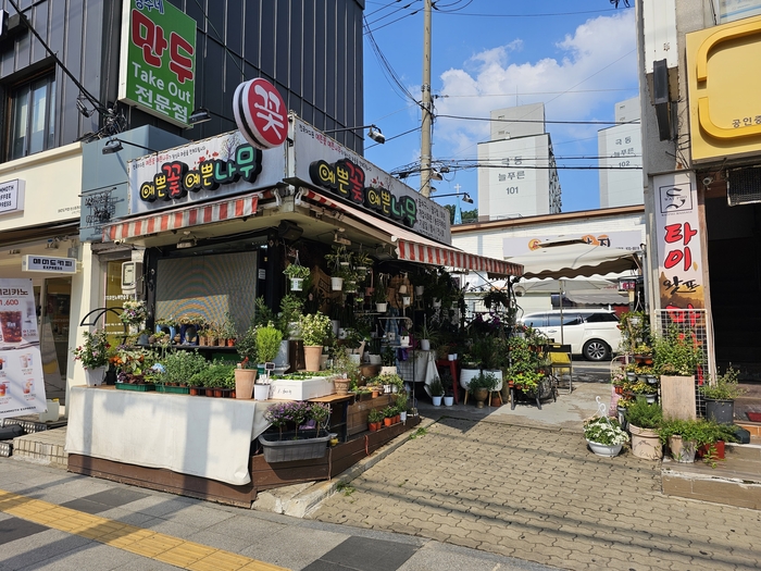 서울 노원구 상계동의 예쁜꽃예쁜나무 매장. <부자비즈> 창업은 충분한 경험을 쌓고 나서 도전했다. 첫 매장은 서울 노원구 상계동에 열었는데 지금은 수락산역 인근에서 예쁜꽃예쁜나무를 운영하고 있다. 매장 규모는 13㎡(약 4평)에 불과하지만 최정화 사장이 경력도 많고 실력이 좋아 지역 주민들에게는 꽃다발을 잘 만드는 곳으로 알려져 인기가 높다.