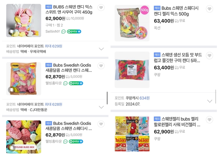 네이버 스토어에서 구매 대행으로 판매 중인 스웨덴 캔디. [사진 = 네이버 스토어 캡처] 비싸고 구하기 힘든 탓에 직접 스웨덴 캔디를 만드는 영상도 올라왔다. 젤라틴과 마시멜로 등 재료를 구해 스웨덴 캔디의 맛과 식감을 비슷하게 구현하는 레시피를 소개하는 것이다.
