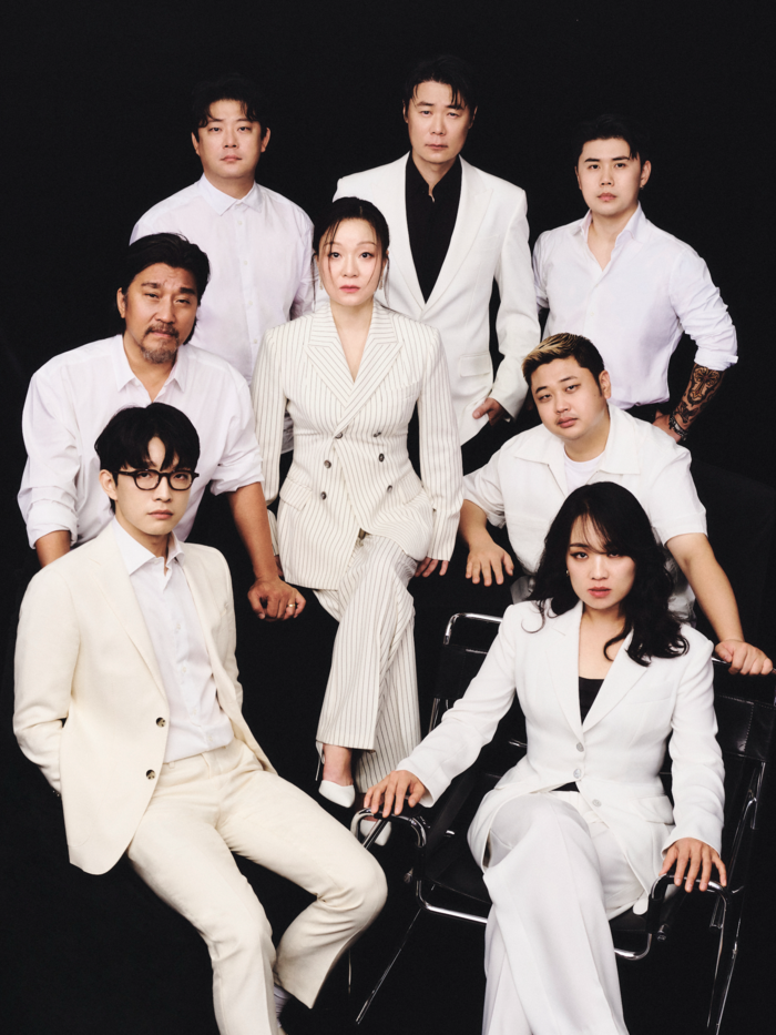 넷플릭스 요리 경연 프로그램 ‘흑백요리사: 요리 계급 전쟁’에서 상위 8명 안에 든 ‘TOP 8’ 출연자들. 왼쪽 아래부터 트리플 스타,에드워드 리,장호준,최현석,권성준(나폴리 맛피아),요리하는 돌아이,정지선,이모카세 1호(가운데). 넷플릭스