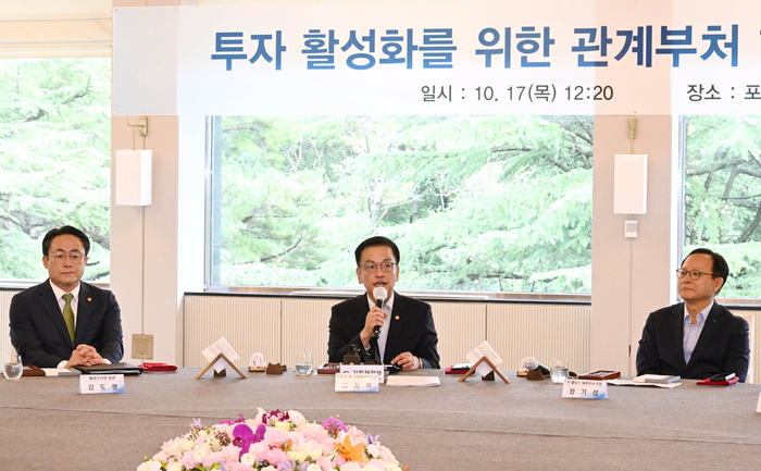최상목 부총리 겸 기획재정부 장관이 10월 17일 포항시 포스코 청송대에서 열린 투자활성화를 위한 관계부처 합동 현장간담회에서 모두발언을 하고 있다. [사진=기획재정부]