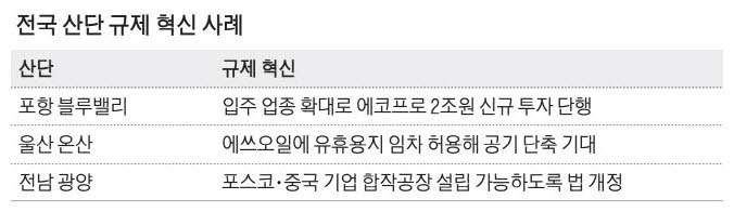 정부의 산업단지 규제 개선에 힘입어 1300여 개에 달하는 국내 산단들이 활기를 띠고 있다. 28일 한국산업단지공단에 따르면 산업입지법과 산업집적법을 비롯한 전통 제조업 관련 규제를 과감히 풀자 신산업 기업과 해외 기업 투자가 물밀듯이 쏟아지고 있다.