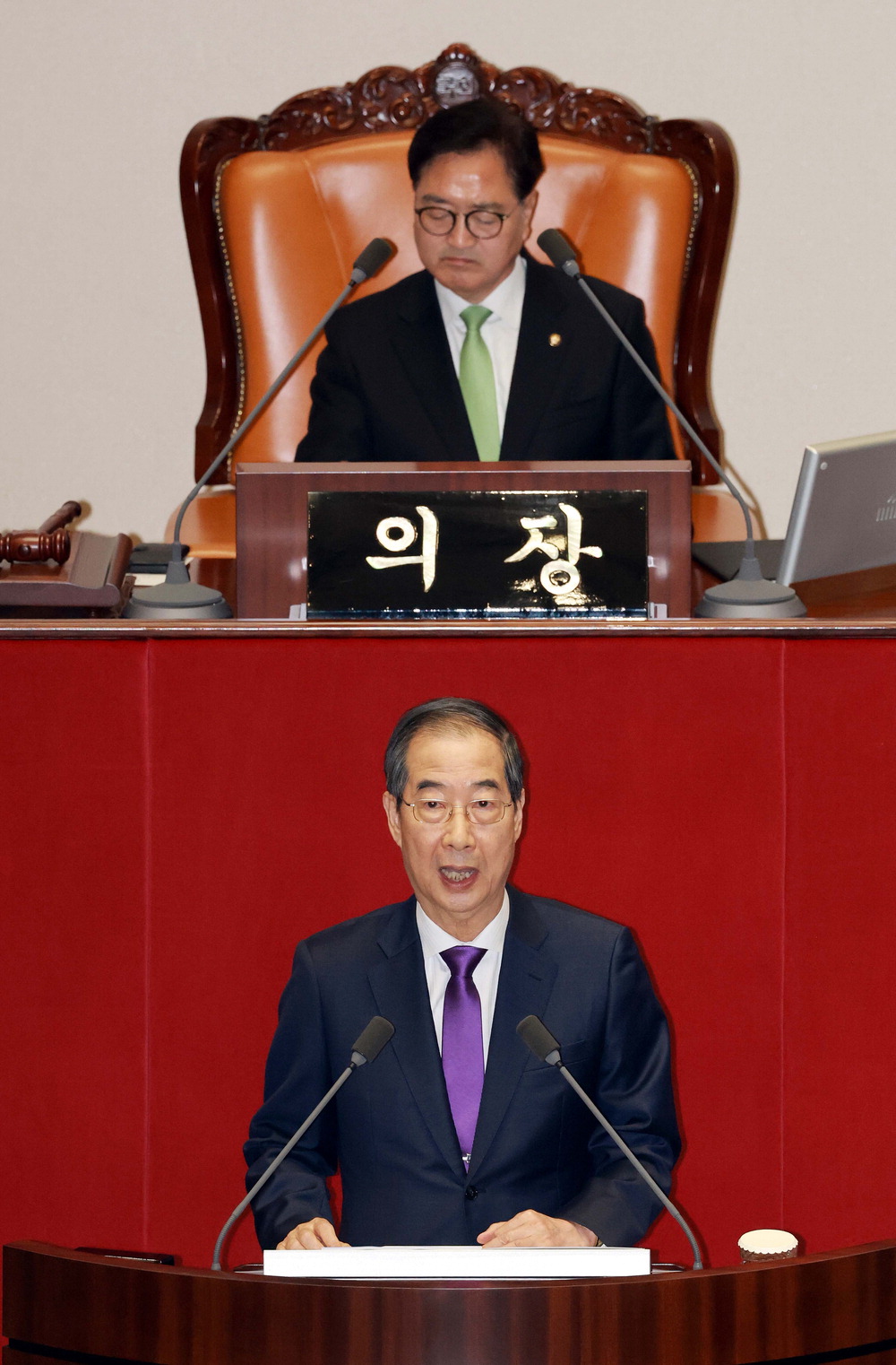 한덕수 국무총리가 4일 국회에서 윤석열 대통령을 대신해 2025년도 예산안에 대한 시정연설문을 대독하고 있다. 김호영 기자