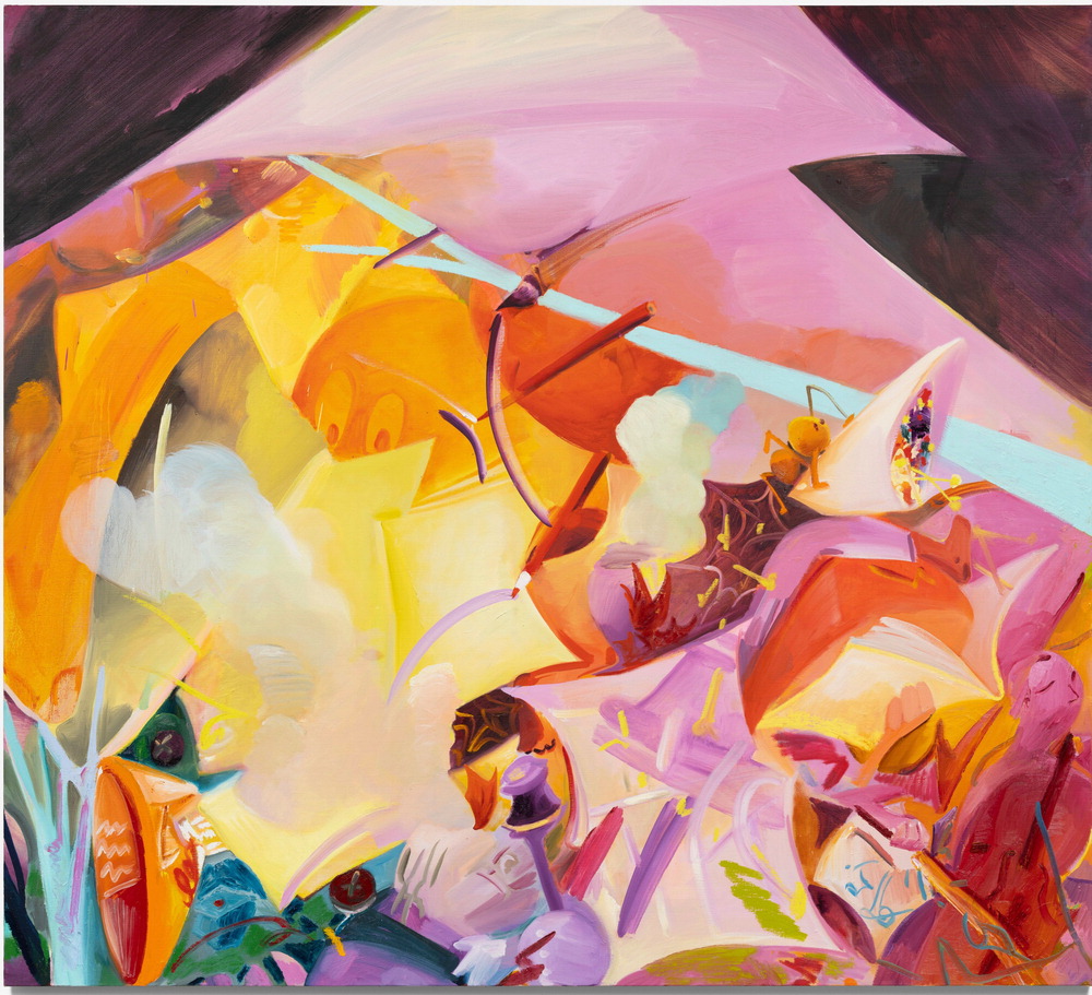 이번 전시의 대표작은 '재판관과 첼리스트'로,가을의 단풍 같은 붉고 노란 색감으로 채워졌다. 유심히 보면 악기,사람,꽃다발과 같은 형체가 겹겹이 쌓여 있다. '무대 위에서 독백하는 연주자'의 내면을 담아낸 이 작품은 작가에게 유의미했던 사물과 감정을 하나씩 그렸다고 한다. 따라서 이 작품은 현실과 꿈 사이의 경계가 허물어진,작가 내면 속 기억의 서랍과 같다.