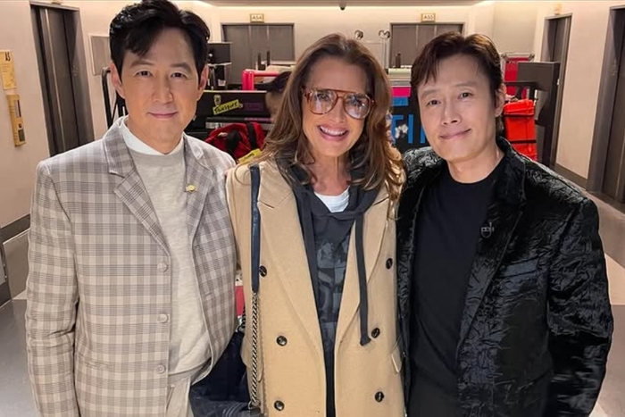 공개된 사진 속에는 브룩 쉴즈를 사이에 두고 미소를 짓고 있는 이정재와 이병헌의 모습이 담겼다.