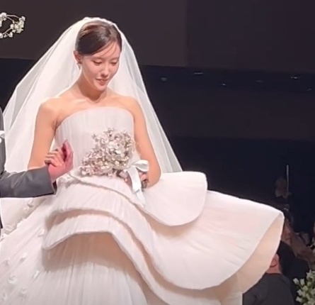 효민. 사진l전효성 SNS 캡처 그룹 티아라 효민(36·본명 박선영)이 금융업계 종사자와 결혼한 가운데,본식 웨딩드레스가 화제를 모으고 있다.