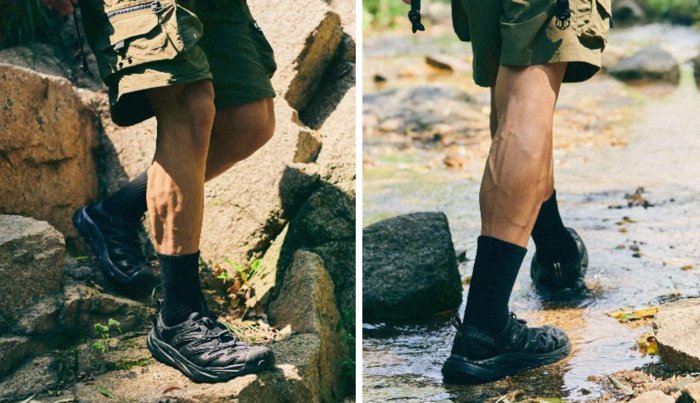 스니커즈 샌들의 대표 주자인 아웃도어 슈즈 브랜드 ‘킨’은 지난해에 이어 올해도 꾸준히 인기를 끄는 모습이다. 장마철을 겨냥한 뉴포트 H2 샌들은 워터 슈즈의 실루엣과 기능성을 트레킹화와 접목한 하이브리드 샌들로,무신사 월간 랭킹에서 상위권을 뺏기지 않고 있다.