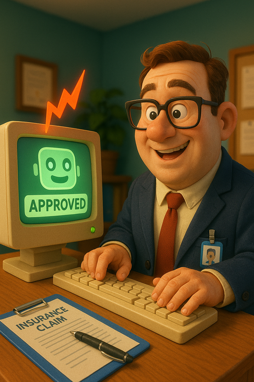 AI가 보험 심사를 하는 모습을 주제로 생성형 AI가 만든 이미지 [챗GPT] 인공지능(AI)이 인간의 임 진단 보험금 지급을 심사하는 시대가 열린다.