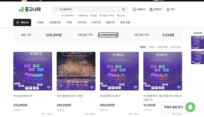 불꽃축제 티켓마저 웃돈 거래 성행