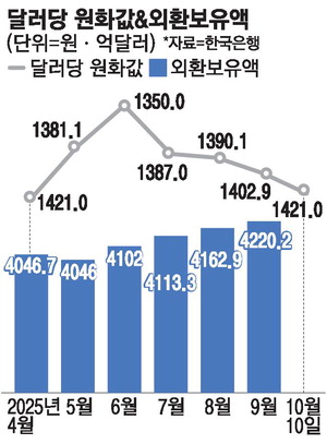 원화값 달러당 1421원