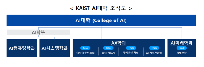 새로 문을 여는 AI 단과대학에는 ‘AI컴퓨팅학과’와 ‘AI시스템학과’,‘AX(AI전환)학과’,‘AI미래학과’ 등 총 4개 학과가 신설된다.