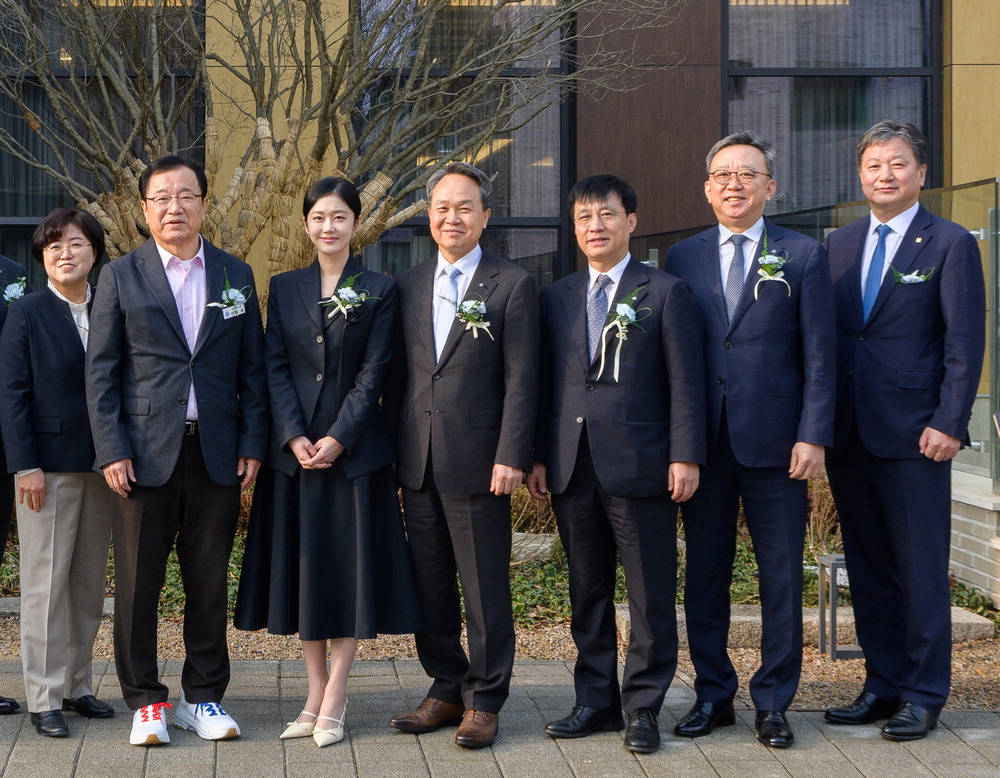 신한라이프케어가 고급 요양원 브랜드인 '쏠라체'의 1호 시설인 쏠라체 홈 미사 문을 열고 지난 15일 기념식을 가졌다. 이현재 하남시장,배우 장나라,진옥동 신한금융그룹 회장,김철주 생명보험협회장,정상혁 신한은행장(왼쪽 둘째부터) 등이 기념 촬영을 하고 있다. 신한라이프