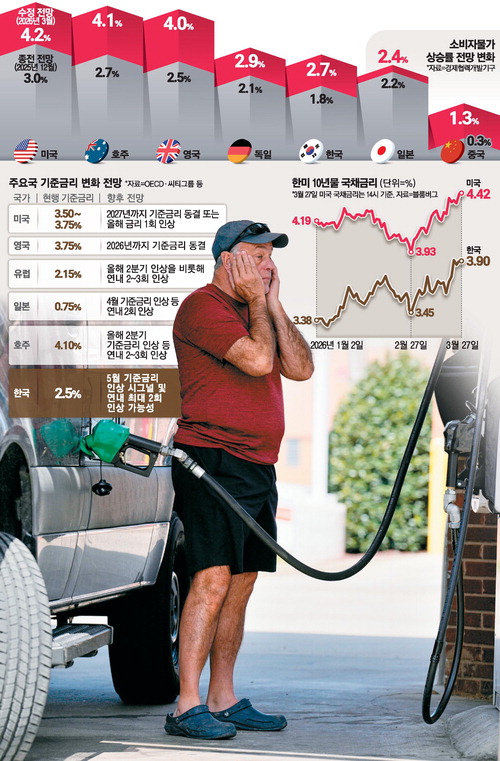한국 역시 기준금리 인상 가능성이 제기된다. OECD는 한국의 올해 소비자물가 상승률이 2.7%까지 높아질 수 있다고 내다봤다. 미국계 글로벌 투자은행(IB) 씨티은행은 최근 보고서에서 "신현송 한국은행 총재 후보자가 5월 금융통화위원회에서 금리 인상 신호를 낼 수 있다"고 밝혔다.