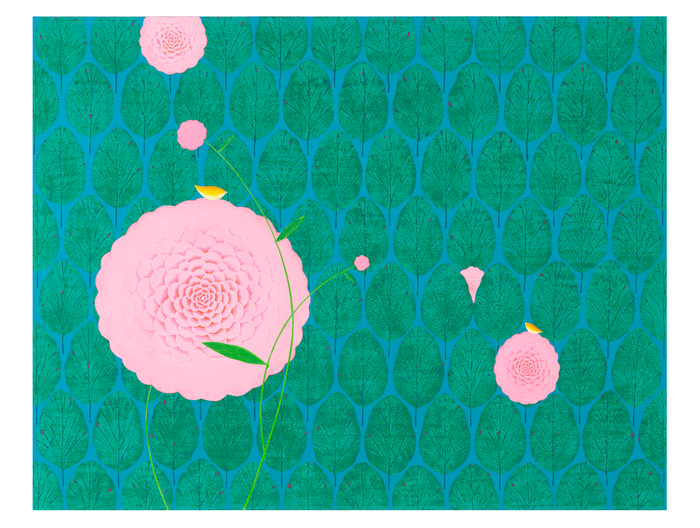 이미애 작가의 개인전 ‘봄 오는 소리’가 경기도 안양 두나무 아트큐브에서 열리고 있다. 전시는 갤러리 1·2층 전관에서 진행된다. 전시장에는 만개한 꽃들이 화면 가득 펼쳐진다. 이 꽃들은 작가가 말하는 ‘꿈꾸는 겁쟁이’다.
