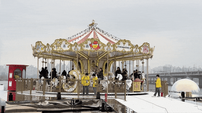 아이와 함께 한강을 찾은 서주인(34) 씨는 “아이가 아직 어려 놀이공원을 못 가봤는데 이렇게 함께 회전목마를 탈 수 있어서 기쁘다”고 탑승 소감을 밝혔다.